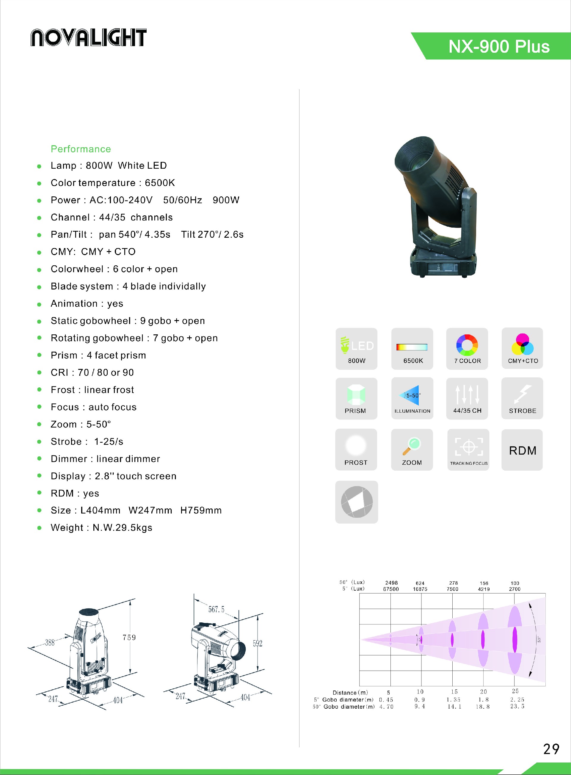 Pan/Tilt:pan 540*/4.35s Tilt 270°/ 2.6s